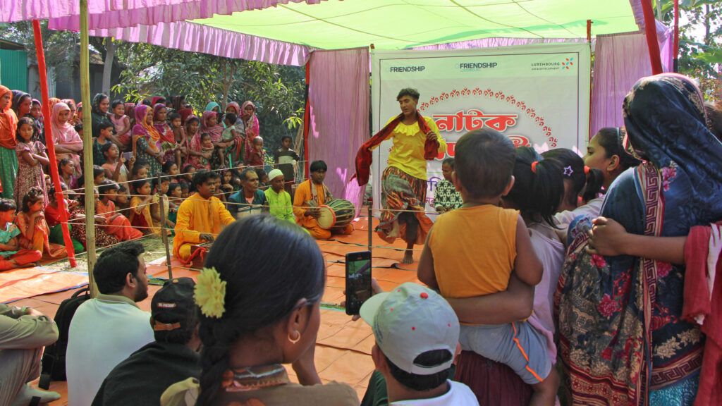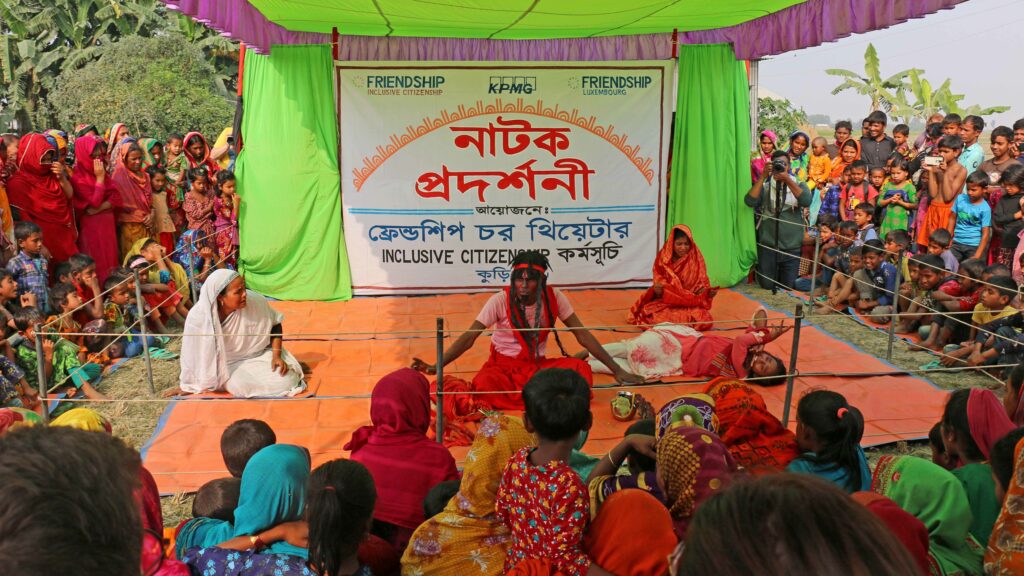 In the remote char regions of Bangladesh, where shifting riverbanks shape both land and life, access to information remains limited. These geographically isolated communities often face high levels of poverty, low literacy rates, and deeply rooted social challenges. In such a context, conventional awareness campaigns struggle to reach people effectively. It is within this gap that Friendship developed char theatre as a practical and impactful tool for communication, raising awareness, inclusive education, and cultural preservation.
